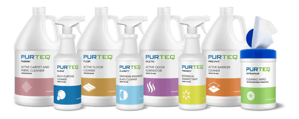 PUR90 uses innovative earth-friendly formulations by our partners at PURTEQ. Our responsible product line harnesses ‘Nature’s Technology’ to solve all your cleaning challenges. You can now replace traditional QUAT based cleaners and harsh chemicals with outstanding results. For ‘greener’, ‘cleaner’ alternatives that deliver the results you demand, check out our extensive line of mineral and plant-based products.